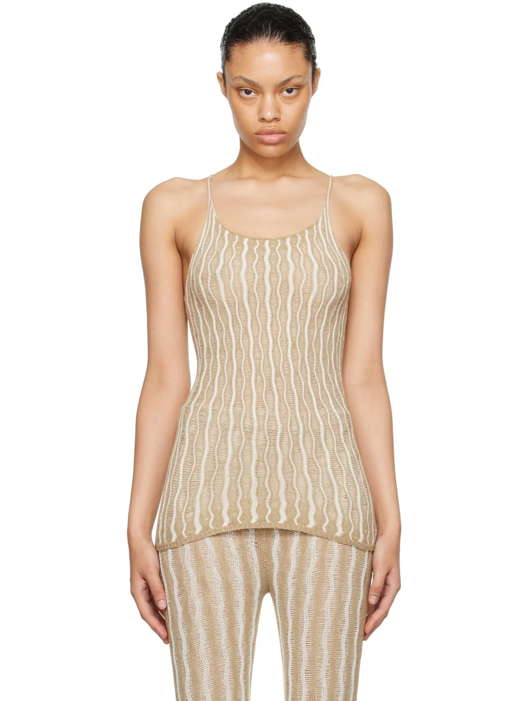 Handcrafted rib knit stretch acrylic camisole. Stripes throughout. · Scoop neck · Fixed shoulder straps Supplier color: Cereal 90% acrylic, 10% elastane. Made in Indonesia 232541F111001