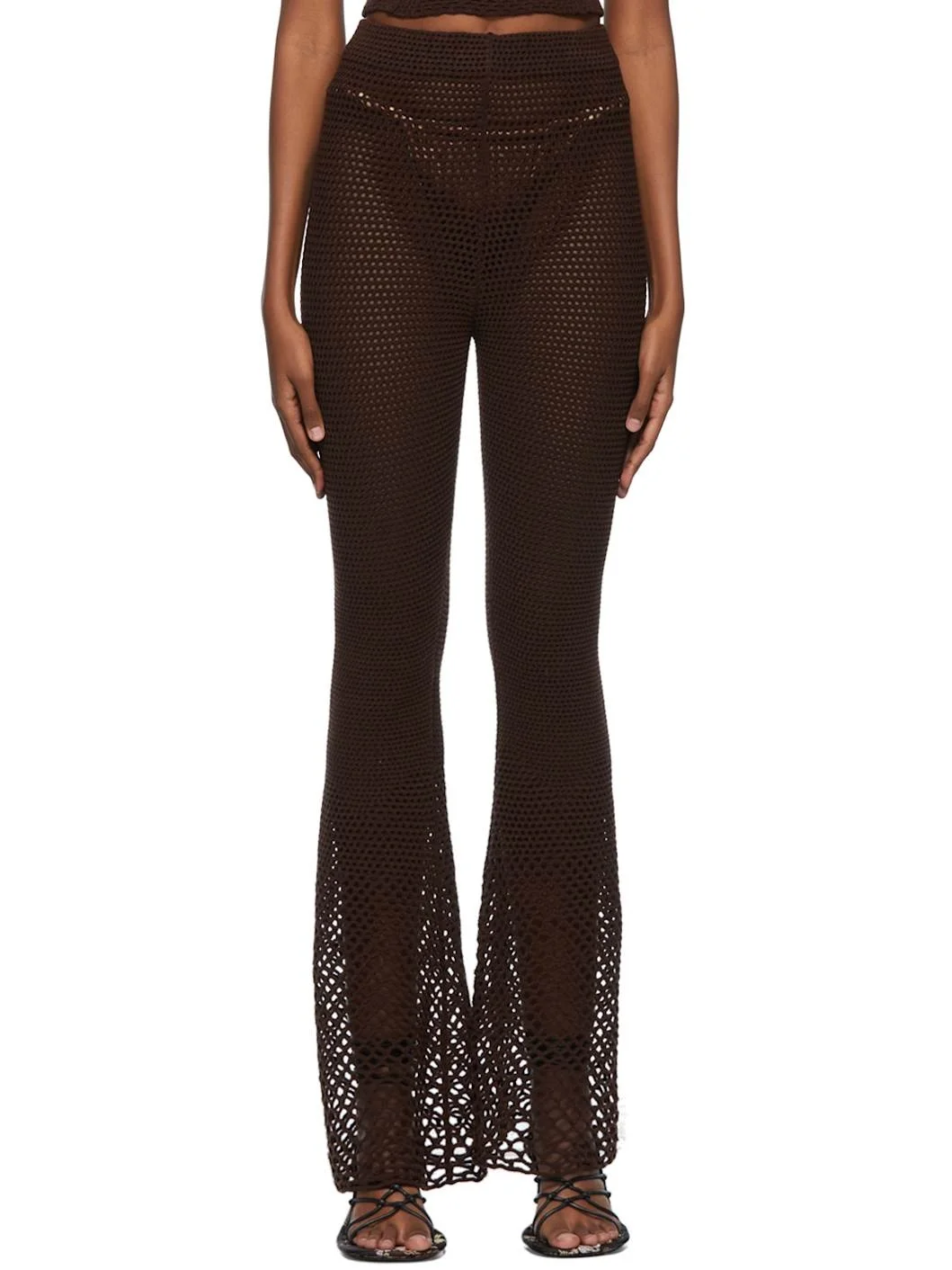 Handmade open crocheted stretch acrylic lounge pants. Elasticized waistband. Supplier color: Soil 90% acrylic, 10% elastane. Made in Indonesia 221541F086010