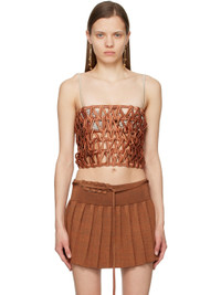 Handcrafted open woven stretch nylon top. · Strapless construction · Straight neckline · Cropped asymmetric hem Supplier color: Soil/Rust Body: 75% nylon, 25% elastane. Lining: 90% polyester, 10% elastane. Made in Indonesia 231541F111008