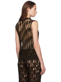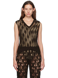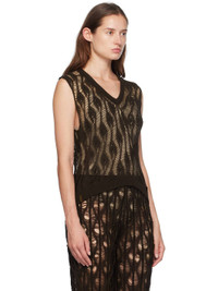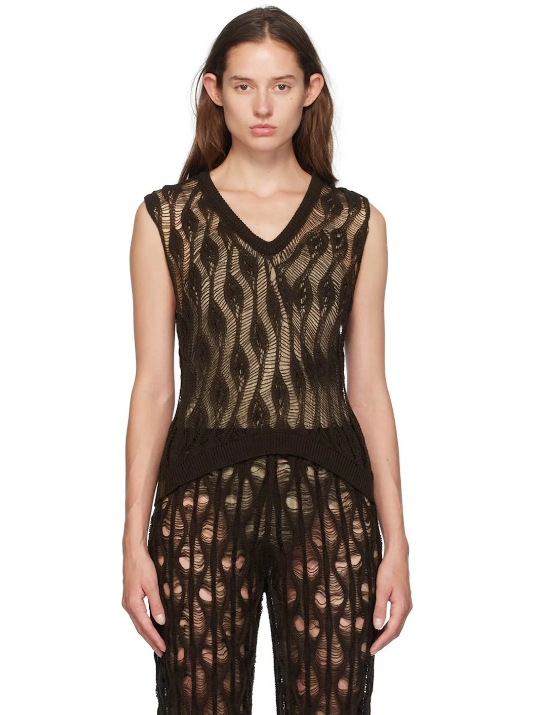 Handcrafted open knit cotton tank top. Laddering throughout. · Rib knit V-neck and hem · Logo flag at back hem Supplier color: Dark brown 100% cotton. Made in Indonesia 242541F111009