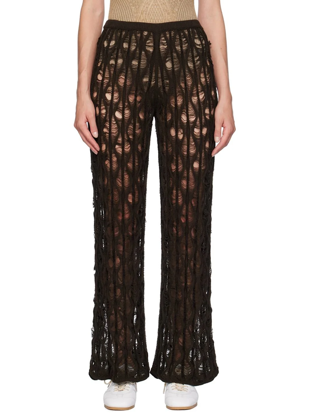 Handcrafted open knit cotton lounge pants. · Laddering throughout · Logo flag at elasticized rib knit waistband Supplier color: Dark brown 100% cotton. Made in Indonesia 242541F086007