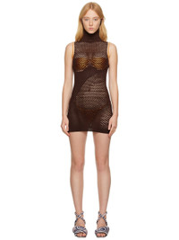 Handcrafted open-knit stretch acrylic dress. · Ear loops at turtleneck · Pinched seams at front Supplier color: Soil 90% acrylic, 10% elastane. Made in Indonesia 222541F052023