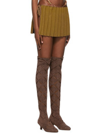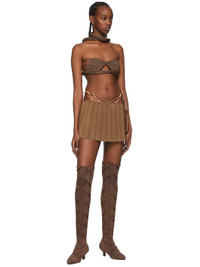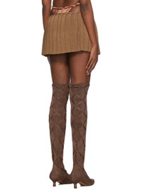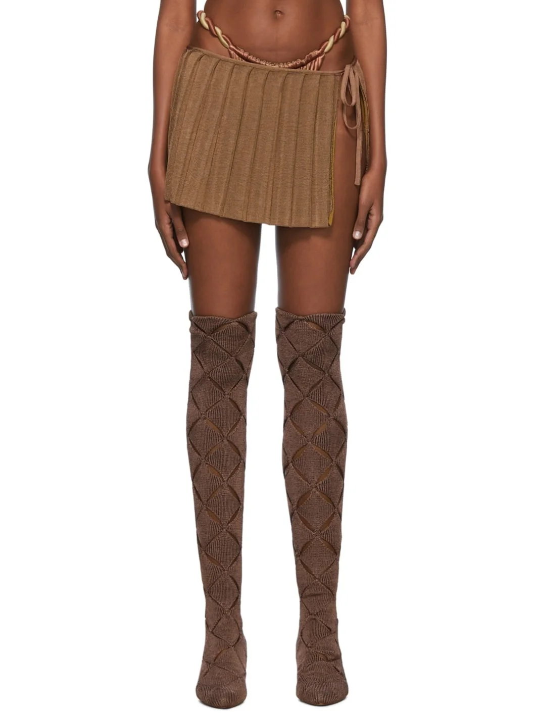 Hand-knit stretch rayon skirt. Pleats throughout. Reverse in yellow knit stretch rayon. · Self-tie fastening at waistband · Vent at hem Supplier color: Soil/Copper 90% rayon, 10% elastane. Made in Indonesia 221541F090021
