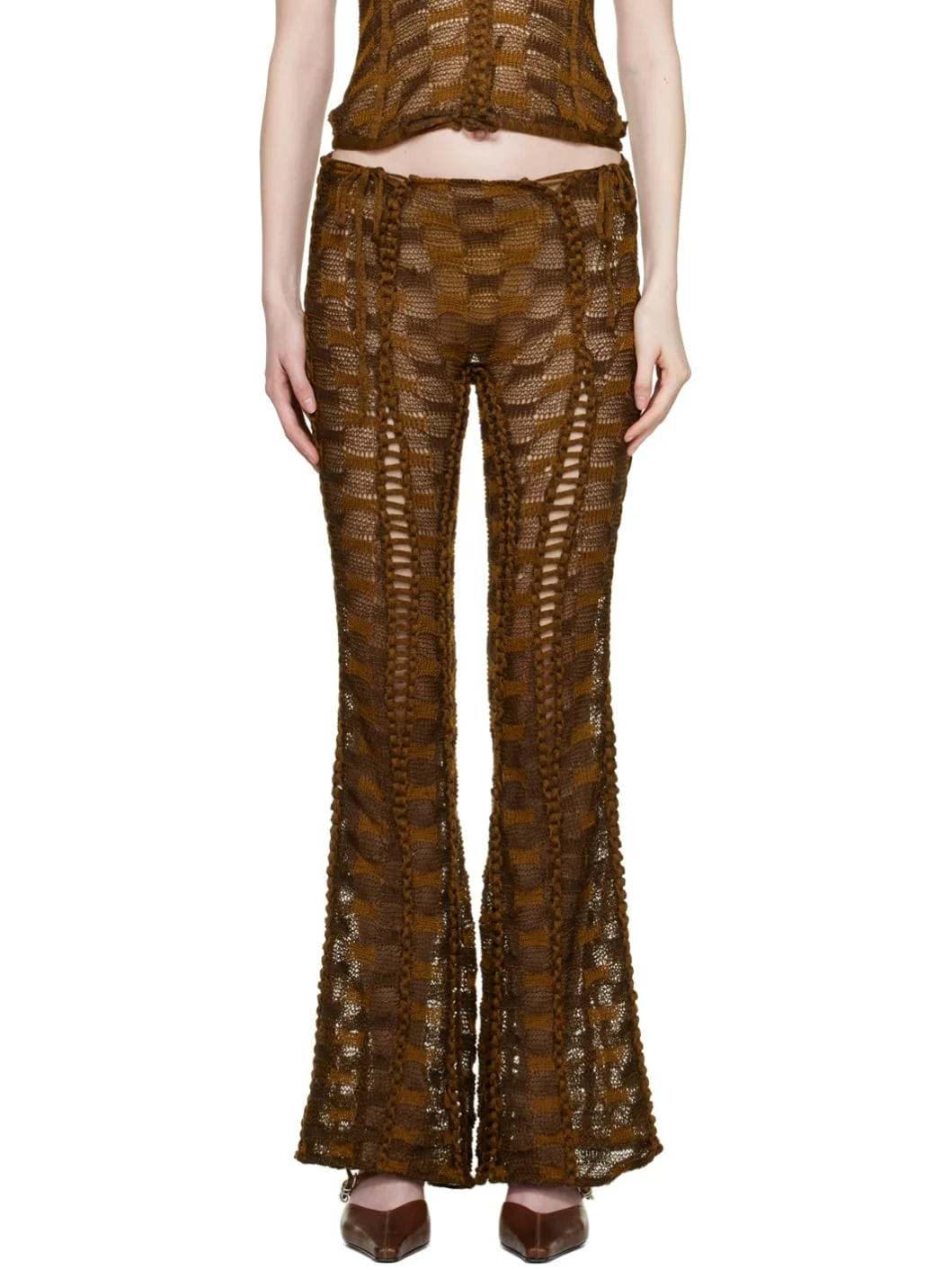Hand-knit rayon lounge pants. Lace-up detailing and jacquard check pattern throughout. Each item is unique. Please note that finishings may vary. Supplier color: Bark 100% rayon. Made in Indonesia 231541F086002