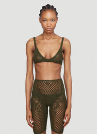 Eco-conscious Indonesian womenswear brand Isa Boulder was created to embrace individuality and personal style. The Explore Crochet Bra is crafted from a technical-blend fabrication in a crochet-knit weave, featuring a scoop neck and ribbed trims. - Technical-blend fabrication in a crochet-knit weave - Scoop neck - Ribbed trims - Directional style - 90% Acrylic 10% Elastane. Dry clean. - Color: Green - Code: 20TP12