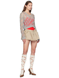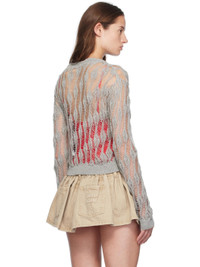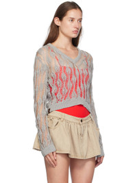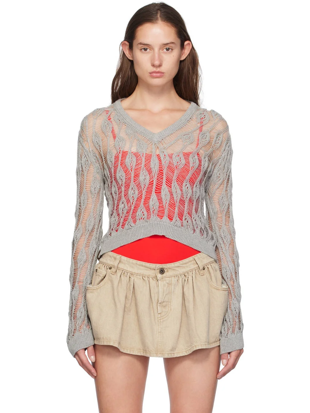 Handcrafted open knit cotton sweater. Laddering throughout. · Rib knit V-neck, hem, and cuffs · Dropped shoulders · Logo flag at outseam Supplier color: Silver 100% cotton. Made in Indonesia 242541F100001