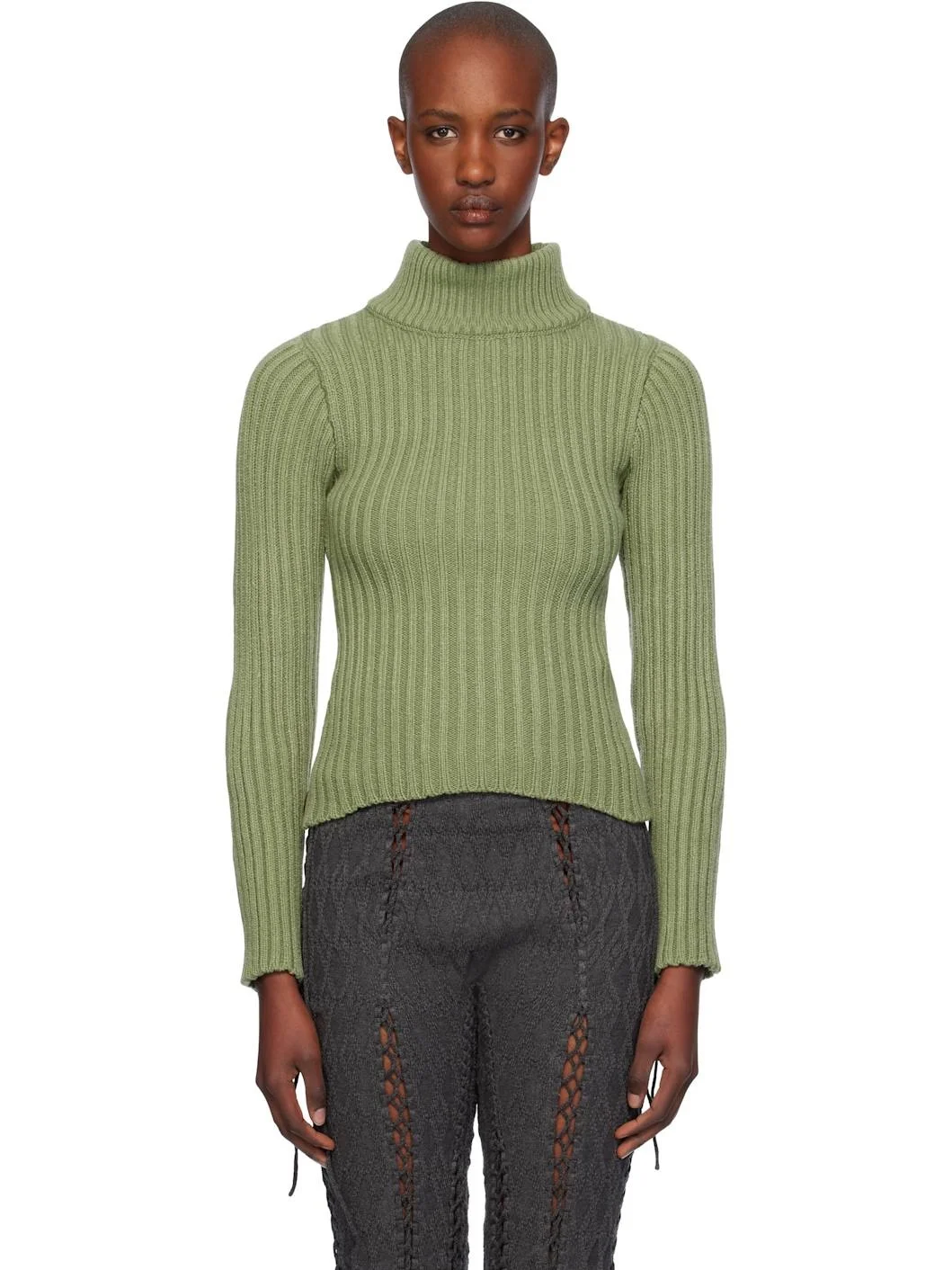 Handcrafted rib-knit acrylic turtleneck. Logo flag at back hem. Supplier color: Leaf 100% acrylic. Made in Indonesia 242541F099006