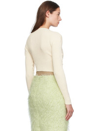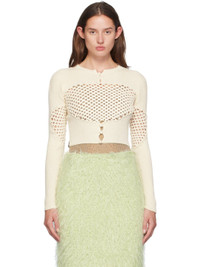 Handcrafted knit cotton top. · Rib knit crewneck · Modified half-button closure · Open knit detailing at front and sleeves · Cropped hem · Logo flag at outseam Supplier color: Off white 100% cotton. Made in Indonesia 242541F110003
