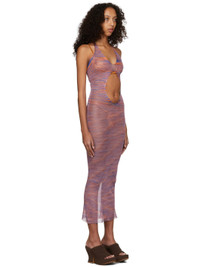 Sleeveless sheer stretch knit long dress striped in orange and purple. · Self-tie halter strap · Cut-out at chest Supplier color: Mars 90% acrylic, 10% elastane. Made in Indonesia 221541F055002