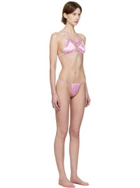 Stretch nylon sateen bikini top. · Round neck · Knotted trim at cups · Self-tie halter straps · Clasp closure at back · Fully lined Stretch nylon sateen bikini bottoms. · Knotted trim at elasticized waistband · Fully lined Supplier color: Pink Body: 75% nylon, 25% elastane. Lining: 90% nylon, 10% elastane. Made in Indonesia 251541F105005
