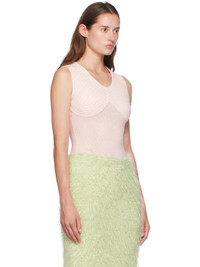 Handcrafted open knit acrylic tank top. · V-neck · Rib knit graphic at chest · Logo flag at outseam Supplier color: Soft pink 100% acrylic. Made in Indonesia 242541F111008