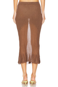 - 100% rayon - Hand wash - Unlined - Pull-on styling - Elasticized waistband - Midweight knit fabric - Garment is made with a semi-sheer fabric, undergarments can show through - Skirt measures approx 36" in length - Revolve Style No. IBOU-WQ1 - Manufacturer Style No. SS25 WSK04