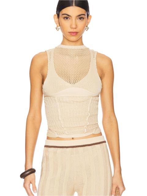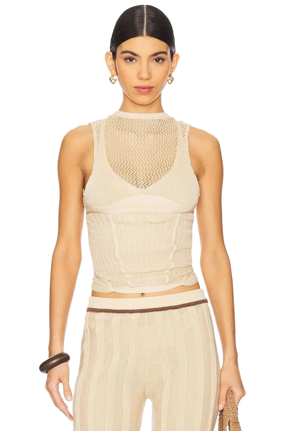 - 100% rayon - Hand wash - Pull-on styling - Back cut-out - Front mesh panel - Lightweight knit fabric - Item not sold as a set - Garment is made with a semi-sheer fabric, undergarments can show through - Revolve Style No. IBOU-WS1 - Manufacturer Style No. SS25 WTP04