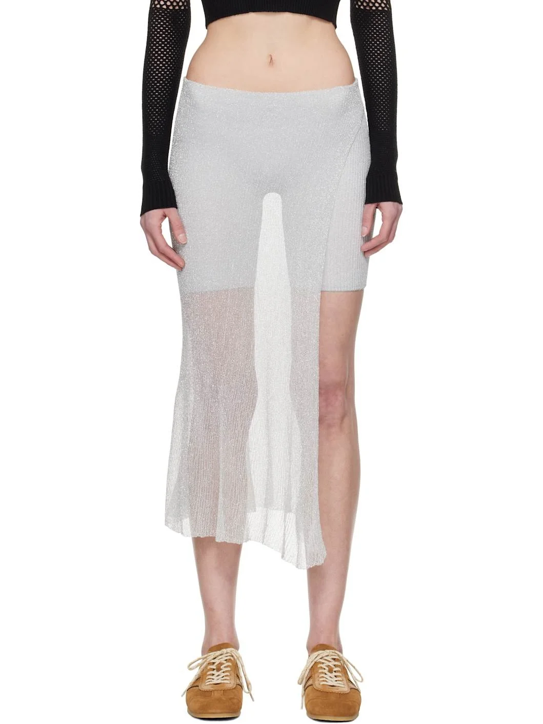 Handcrafted open-knit stretch rayon skort. Metallic thread detailing throughout. · Layered construction · Slit at side seam · Rib-knit shorts-style underlay Supplier color: Silver 90% rayon, 10% elastane. Made in Indonesia 251541F092001