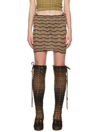 Handcrafted open knit stretch acrylic skirt. Stripes throughout. · Rib knit elasticized waistband and hem · Detachable brief-style underlay · Scalloped edge at hem Available exclusively at SSENSE. Supplier color: Tiger 90% acrylic, 10% elastane. Made in Indonesia 232541F090011