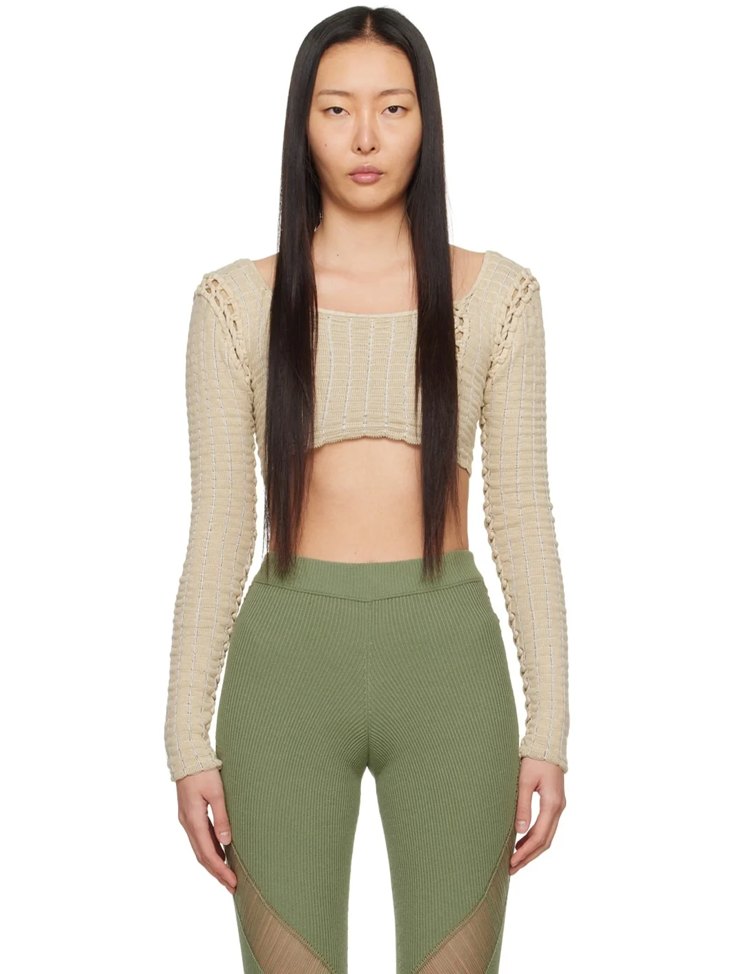 SSENSE Exclusive Beige Grid Long Sleeve T-Shirt