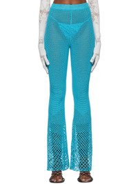 Handcrafted open crocheted stretch acrylic lounge pants. Elasticized waistband. Available exclusively at SSENSE. Supplier color: Teal 90% acrylic, 10% elastane. Made in Indonesia 221541F086011