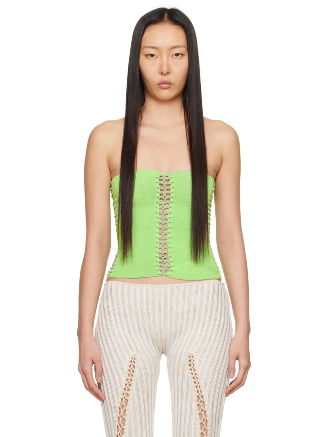 Rib knit stretch rayon tube top. Alternate styling as skirt. · Braided trim throughout · Straight neck Available exclusively at SSENSE. Supplier color: Mint 90% rayon, 10% elastane. Made in Indonesia 241541F111014