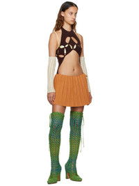 Handcrafted knit stretch acrylic bodysuit. · Cut-outs throughout · Self-tie halter strap Available exclusively at SSENSE. Supplier color: Brown 90% acrylic, 10% elastane. Made in Indonesia 222541F052026