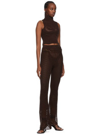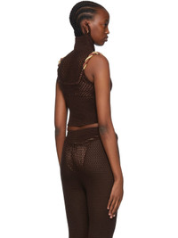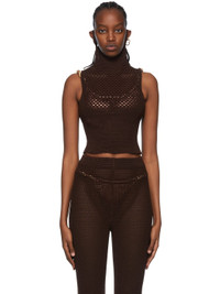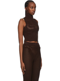 Handcrafted open crocheted stretch acrylic tank top. Extended trim with ear loops at turtleneck. Available exclusively at SSENSE. Supplier color: Soil 90% acrylic, 10% elastane. Made in Indonesia 221541F099004