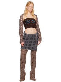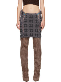 Hand-knit double-faced quilted stretch rayon skirt. Laddering and graphic pattern throughout. · Lace-up detailing at front and back · Unlined Available exclusively at SSENSE. Supplier color: Steel 80% acrylic, 20% elastane. Made in Indonesia 222541F090003