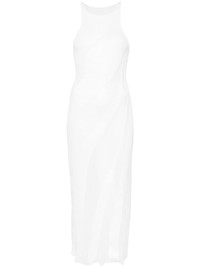 Walking sheer-panels maxi dress Highlights - Milk white - Ribbed knit - Semi-sheer panels - Round neck - Sleeveless - Slight flare - Straight hem - Long length Imported Composition Rayon 100% SIZE & FIT Model measurements Height 5 ft 10 in(1.77 m) Bust/Chest 33.07 in(84 cm) Hips 37 in(94 cm) Waist 24.8 in(63 cm) FittingInformation Designed for a close fit throughout Made with a lightweight knit, this piece offers some stretch This piece's size conversion is based on body measurements; for help with this item's sizing, refer to our Size & Fit Guide