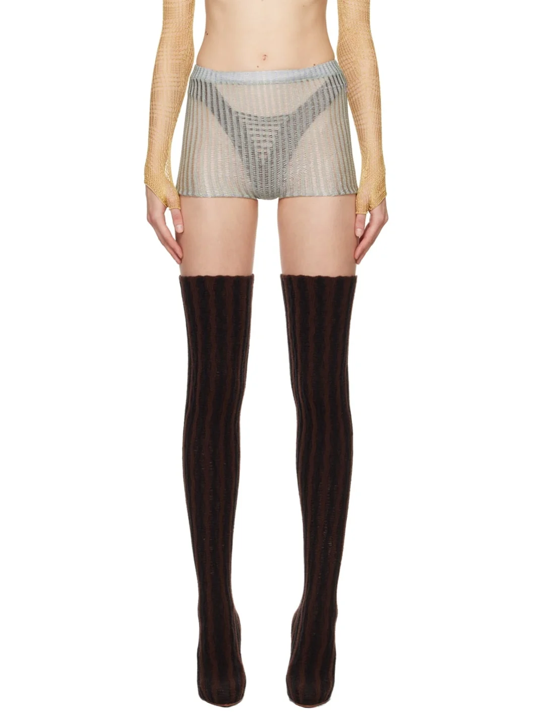 Handcrafted sheer knit rayon shorts. Elasticized waistband. Wholesale exclusivity at SSENSE. Supplier color: Lilac 100% rayon. Made in Indonesia 241541F088000
