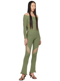 Knit cotton trousers. Laddering throughout. · Rib knit elasticized waistband · Lettuce edge at cuffs Available exclusively at SSENSE. Supplier color: Seafoam 100% cotton. Made in Indonesia 241541F086012