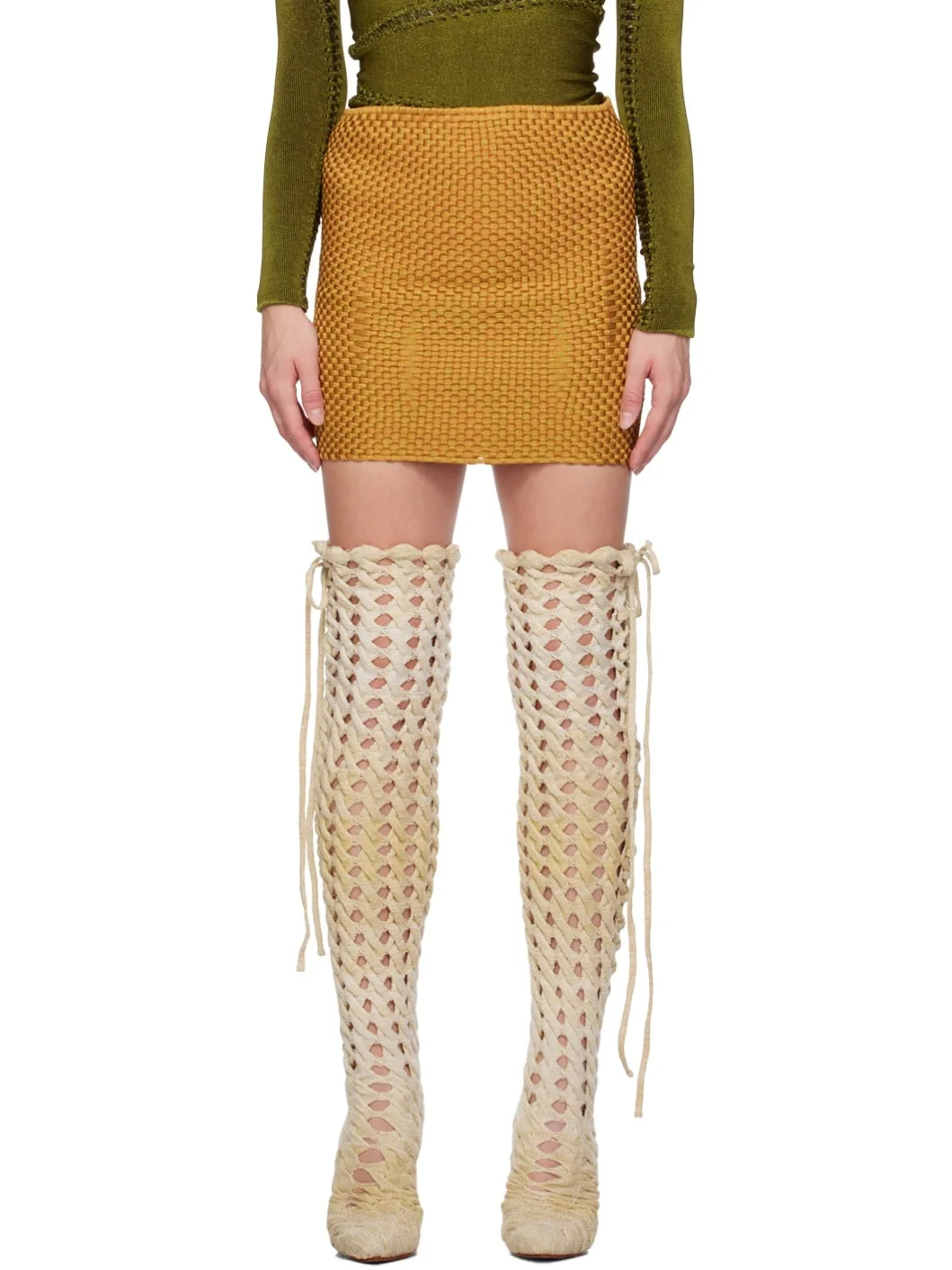 Handcrafted basket-woven rayon skirt. · Laddering at outseam · Detachable lining Available exclusively at SSENSE. Supplier color: Tangerine 100% rayon. Made in Indonesia 232541F090007