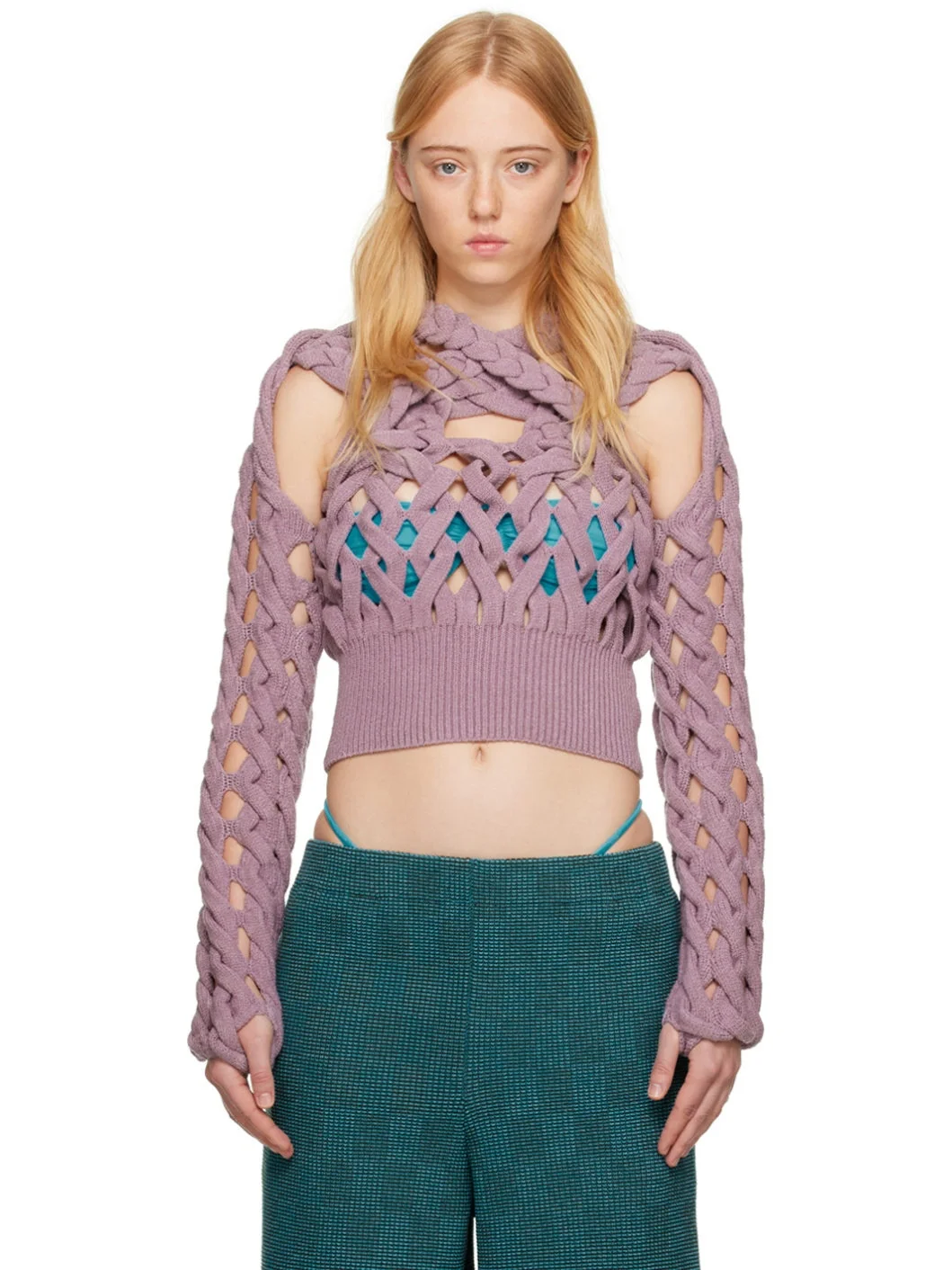 Handcrafted knit stretch acrylic shrug-style gloves in purple. Available exclusively at SSENSE. Supplier color: Lilac 90% acrylic, 10% elastane. Made in Indonesia 222541F012012