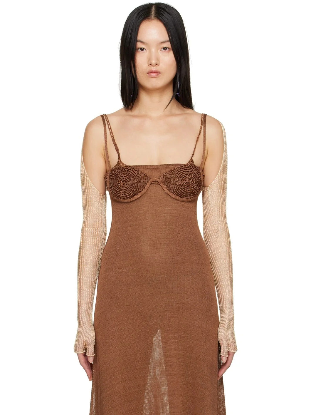 Handcrafted rayon mesh sleeve-style gloves in yellow. Available exclusively at SSENSE. Supplier color: Calico 100% rayon. Made in Indonesia 231541F012003