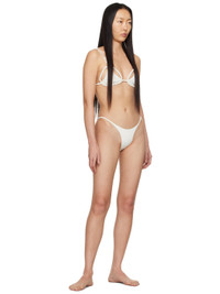 Stretch nylon jersey bikini top. Braided trim throughout. · Scoop neck · Fixed spaghetti straps · Hook-eye closure at back · Fully lined Stretch nylon jersey bikini bottoms. Braided trim throughout. · Elasticized waistband · Fully lined Supplier color: Milkpearl Body: 75% nylon, 25% elastane. Lining: 90% polyester, 10% elastane. Made in Indonesia 241541F105002