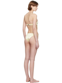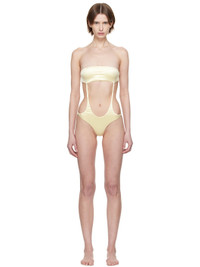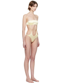Stretch nylon satin one-piece swimsuit. · Strapless construction · Straight neck · Cutout at waist · Tab-slot fastening at open back · Fully lined · Logo-engraved silver-tone hardware Supplier color: Light yellow Body: 75% nylon, 25% elastane. Lining: 90% polyester, 10% elastane. Made in Indonesia 251541F103003