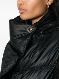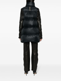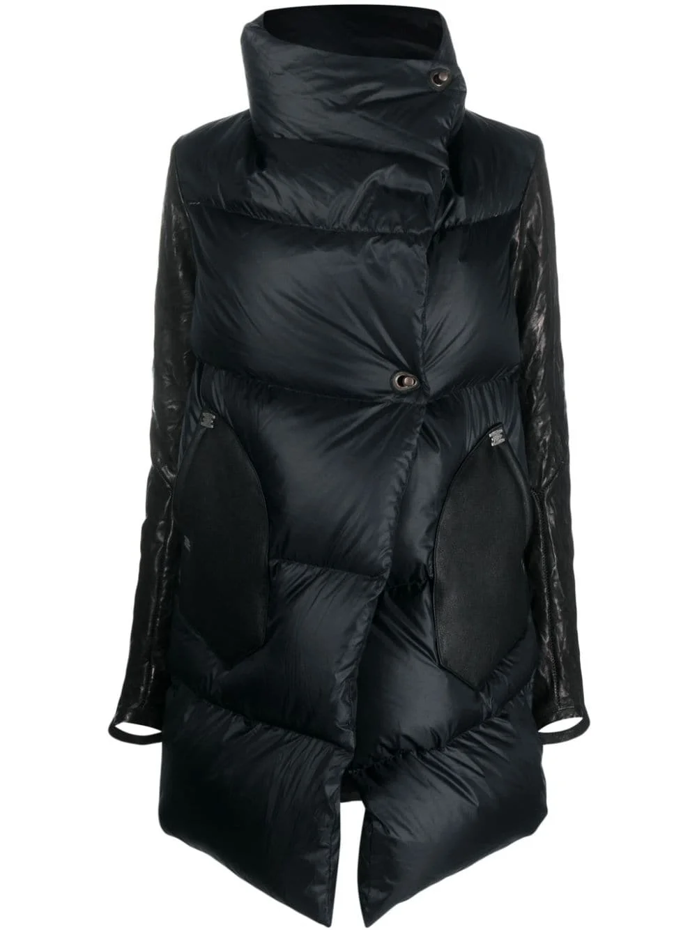 lock-fastening quilted down jacket Highlights - Jet black - Duck down/leather - Quilted finish - Padded design - Asymmetric design - Funnel neck - Off-centre front lock fastening - Contrasting-fabric long sleeves - Thumb slots - Two front patch pockets - Straight hem Made in France Composition Outer: Polyamide 100%, Leather 100% Lining: Duck Down 90%, Feather 10% SIZE & FIT Model measurements Height 5 ft 11 in(1.8 m) Bust/Chest 30.7 in(78 cm) Hips 35.03 in(89 cm) Waist 24.4 in(62 cm) FittingInformation Designed to be unstructured, offering a loose fit throughout Made from a padded non-stretch fabric, giving it no natural elasticity This piece fits true to size – take your usual size Washing instructions Dry Clean Only