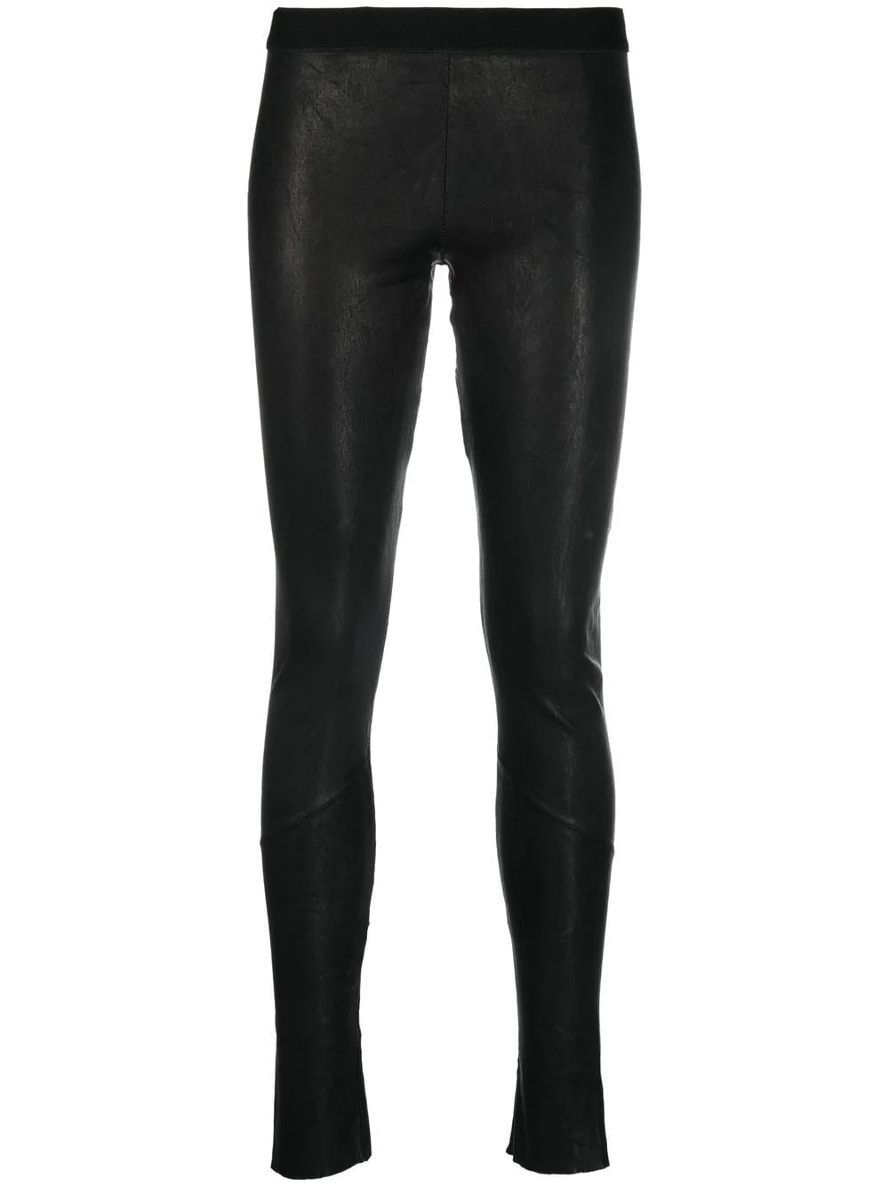low-rise leather leggings black lambskin low-rise elasticated waistband skinny cut Made in France Composition Lamb Skin 100% Washing instructions Specialist Cleaning