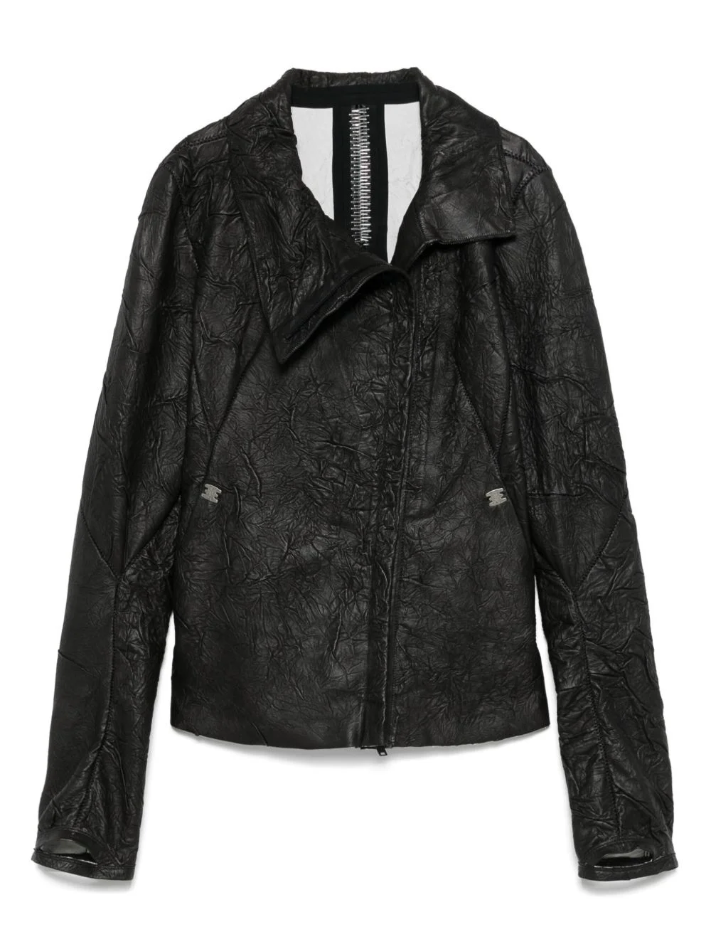 prudent leather jacket Highlights - Black - Off-centre front zip fastening - Two side inset pockets - Silver-tone logo plaque - Zip details Made in France Composition Lamb Skin 100% SIZE & FIT Model measurements Height 5 ft 10 in(1.79 m) Bust/Chest 33.07 in(84 cm) Hips 35.82 in(91 cm) Waist 24.01 in(61 cm) FittingInformation Designed for a slim fit that sits just away from the body offering a close yet comfortable fit The sleeves are constructed with additional length and built-in thumb loops that allow for movement and a secure fit Soft leather has a supple and smooth construction offering some flexibility