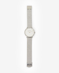 80% stainless steel, 20% calfskin leather Silver-colored round watch with stainless steel bracelet Silver-colored hands and dials Crown for adjusting time Clasp fastening, stainless steel mesh bracelet with an interchangeable midnight blue velvet leather strap Style: MO0003-00MD012B 10.05