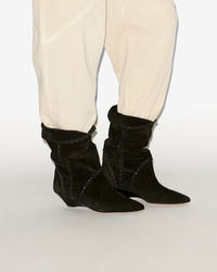 Soft suede boots Soft turn-down uppers Smooth braided leather finishes Pointed toes Laminated leather wedge heels Soft leather insoles and outsoles Soft leather lining Heel height: 4.5 cm / 1.8 in. Style: BO0211FAC3A03S01BK EDOA 95% suede calfskin leather, 5% calfskin leather