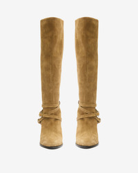 Double strap suede calfskin leather boots Ankle straps with a round metal button Pointed toes Leather stiletto heels Soft leather insoles and outsoles Soft leather lining Heel height: 9 cm / 3.5 in. Style: BO0003FDD1A25S01BK IEVA 100% suede calfskin leather Care & Sustainability the history and environmental impact of this product