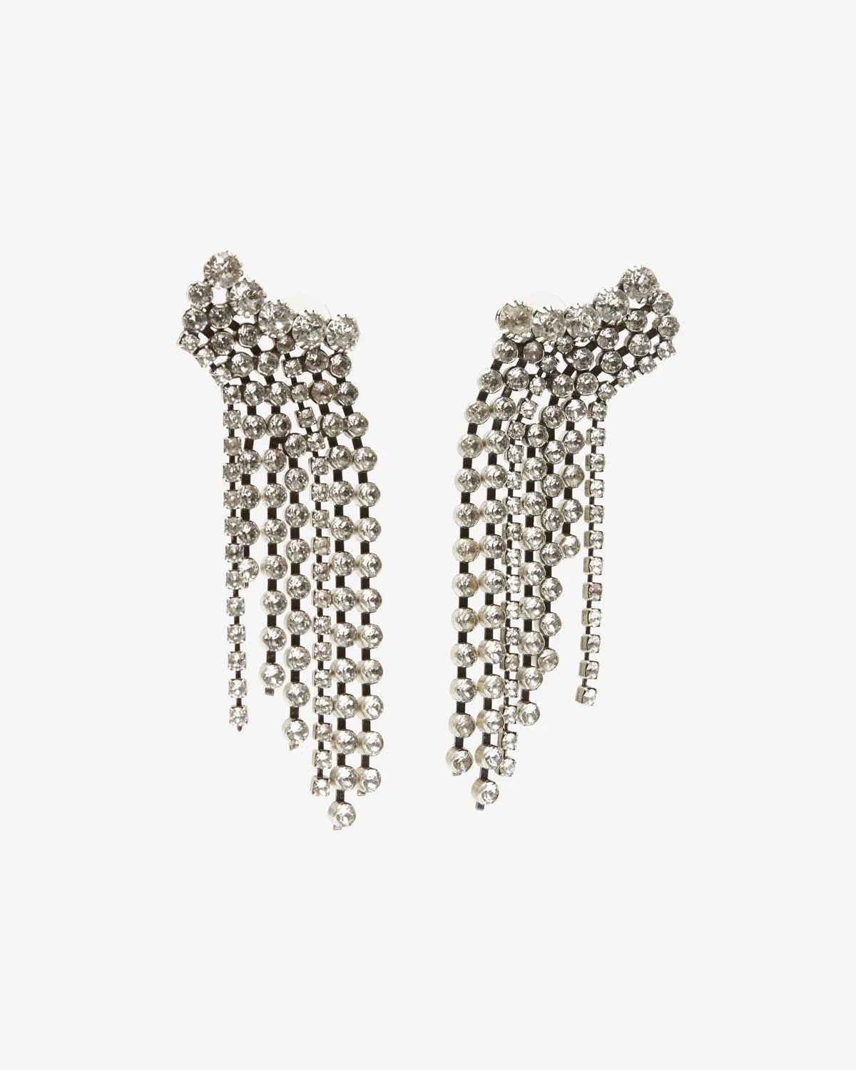 p>Cascade earrings Rhinestone pendants Silver-finish brass frame Engraved "Isabel Marant" logo on the back Clasp with pin and push back Height: 8 cm / 3.2 in. Style: BL0623-00M012B A WILD SHORE 70% brass, 30% glass