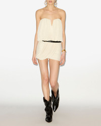 Draped plain-colored jersey bustier dress Fully gathered Low-cut V-neckline Gathers on sides of skirt Draped tail Done up on the side with snap buttons, hooks, and a zipper Short and fitted Style: RO0854FAC3K02I23EC ADELITA 80% viscose, 20% silk