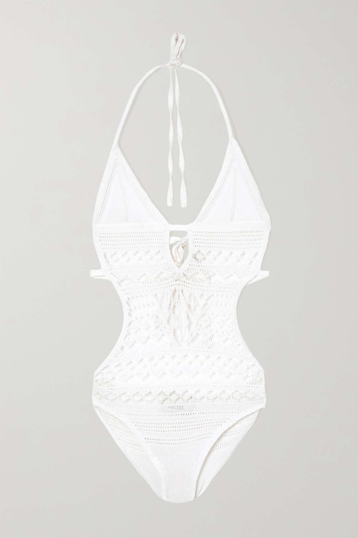 Adema tie-detailed crocheted cotton-blend halterneck bodysuit