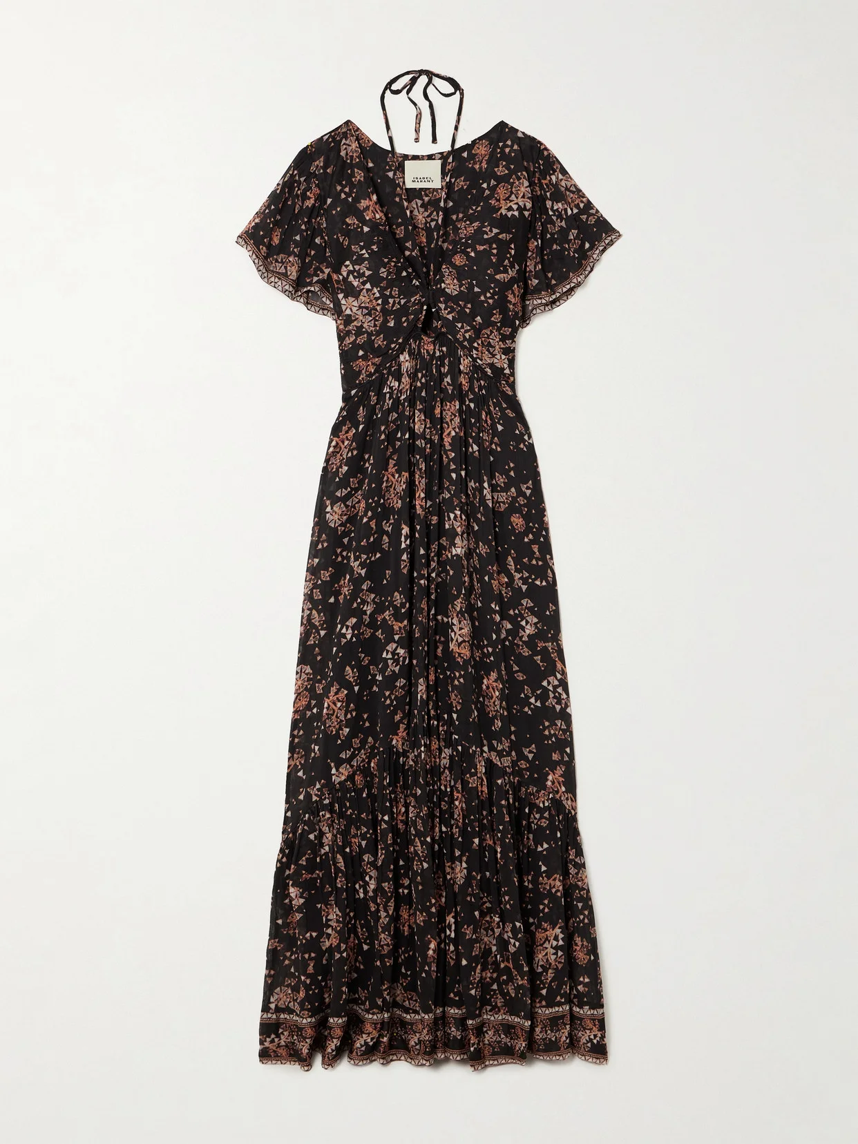 Imbued with the effortlessness and ease often associated with Parisian style, Isabel Marant designs clothes for women and their "real lives". Cut from airy cotton and silk-blend crepon, this 'Agathe' dress is designed with a cutout bodice framed by halterneck ties and fluttery sleeves then falls to a swishy tiered maxi skirt.