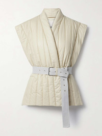 EDITORS'NOTES Isabel Marant's 'Ajali' vest is the cool and functional transitional layer your closet is missing. It's made from cotton-blend shell that's quilted to keep the insulating padding evenly distributed and comes with a grosgrain belt to secure it closed. Slip yours on over denim shirting or chunky knits. SIZE & FIT - Fits true to size, take your normal size - Designed for a relaxed fit, use the belt to cinch in at the waist - Padded, non-stretchy fabric - Model is 180cm/ 5'11" and is wearing a FR 36 DETAILS & CARE - Ecru cotton-blend shell, light-gray grosgrain - Slips on - 83% cotton, 17% polyurethane; trim: 90% polyester, 10% polypropylene; lining: 51% viscose, 49% cotton; padding: 100% polyester - Dry clean