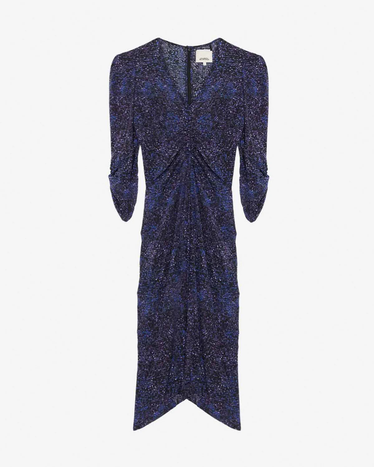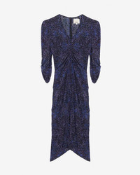 Gathered printed silk blend mosaic pattern midi dress Low-cut V-neckline Structured shoulders with thin pads 3/4 sleeves Gathered, draped style sleeves and waist Done up in back with a button and a hidden zipper Asymmetrical hem Lightweight unlined fabric Flowing cut, fitted at the waist Style: RO0011FAC3J08I30MI ALBINI 91% silk, 9% elastane