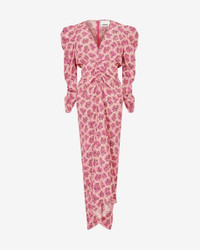 91% silk, 9% elastane Midi dress in stretch silk 3/4 sleeves Low-cut V-neckline Snug-fitting waist Gathered, draped style sleeves and waist Structured shoulders Hidden clip and zipper on the back Asymmetrical hem Lightweight unlined fabric Style: RO0011FA-A3J10I ALBINI