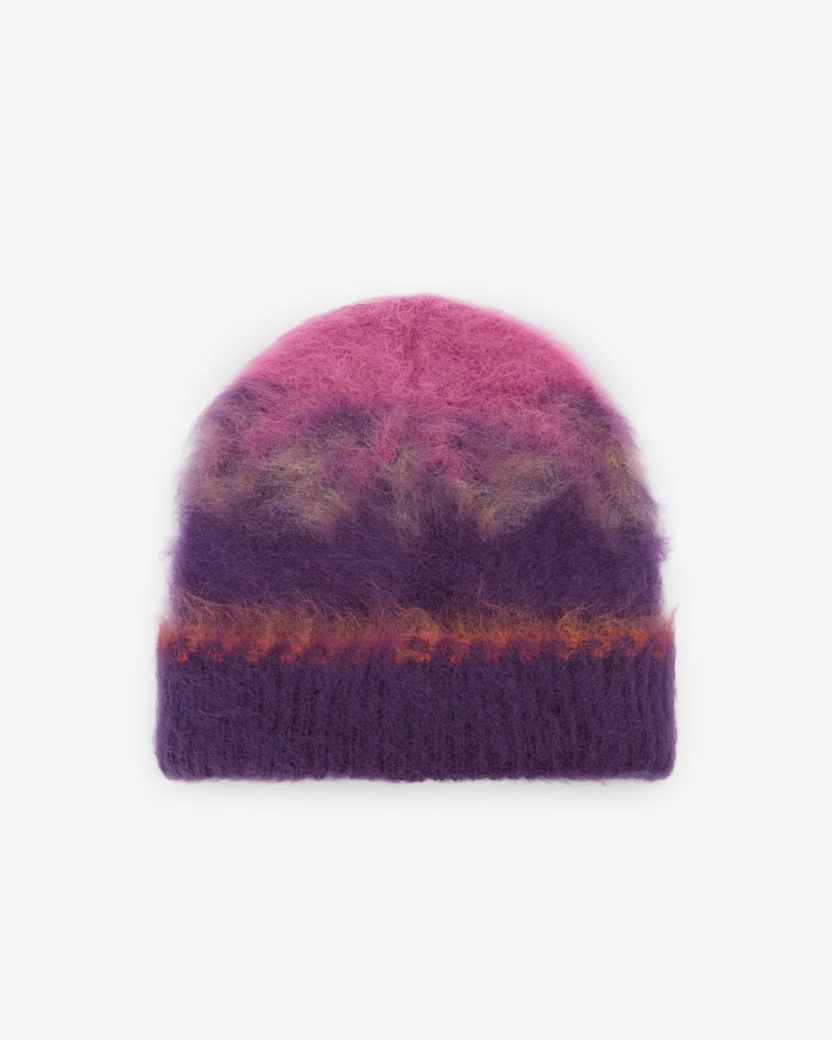 Graphic mohair wool beanie Ribbed turn-up brim Style: BE043MFAD1D01A40PK ALESSA 31% wool, 28% super kid mohair, 22% polyamide, 19% mohair Care & Sustainability the history and environmental impact of this product