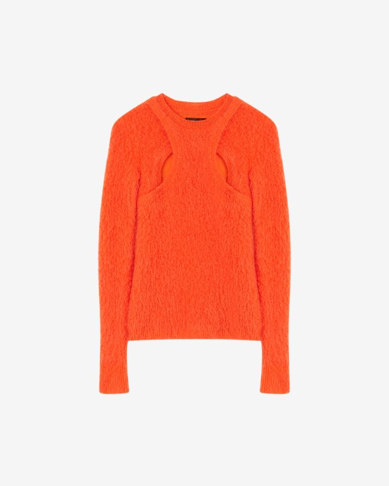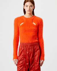 Orange mohair sweater with long sleeves Crew neck Cut-out front The model is wearing a size FR 36 and she is 1m77 Reference : PU2068-22H038I ALFORD 44% Wool, 18% Viscose, 17% Recycled polyamide, 11% Polyamide, 10% Synthetic fibers FITTING ADVICE Fits true to size
