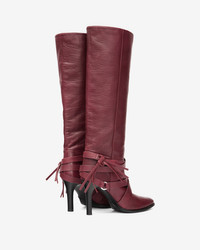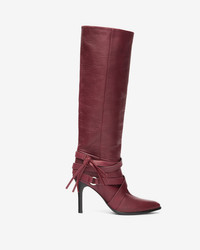Draped supple leather boots Straps with rings, tied around the ankles Pointed toes Leather stiletto heels Soft leather insoles and outsoles Soft leather lining Heel height: 9 cm / 3.5 in. Style: BT0041FA-C4A12S ANALUI 100% calfskin leather