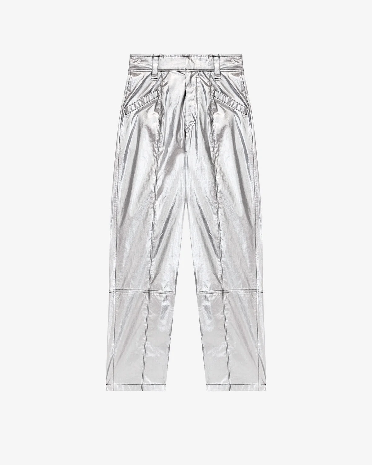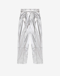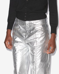 Pants in coated silver-finish cotton Fitted waistband with wide loops Done up with a hidden hook and zipper Pockets on the front Patch pockets on the back Regular fit Ankle length Style: PA0154FB-A3B43I AUDE 85% cotton, 15% polyurethane